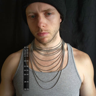 Chains of various lengths worn on a single person